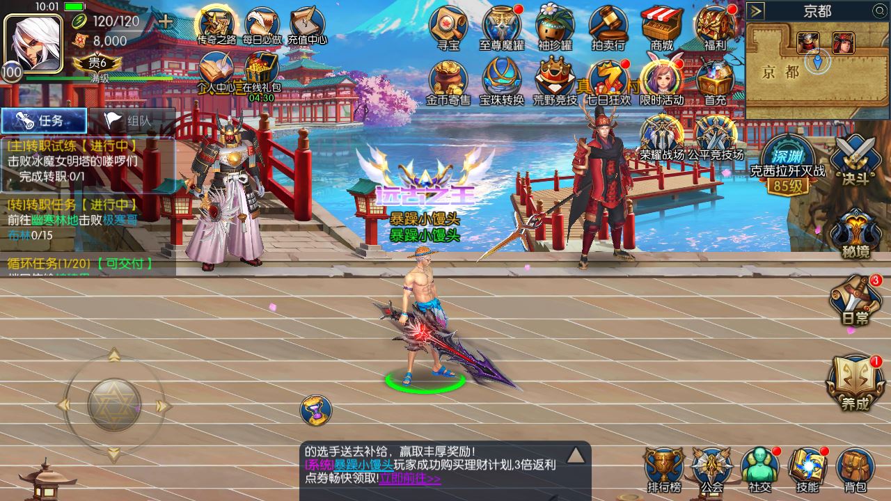 2.开放限时商城,新增限时商城团本神宠随机和自选宝箱,新增10-30激化劵(100%)、100级顶级魔剑、炎狱、浴血、绝世神王、诸神混沌武器,成神之路全职业装备、首饰随机和自选宝箱