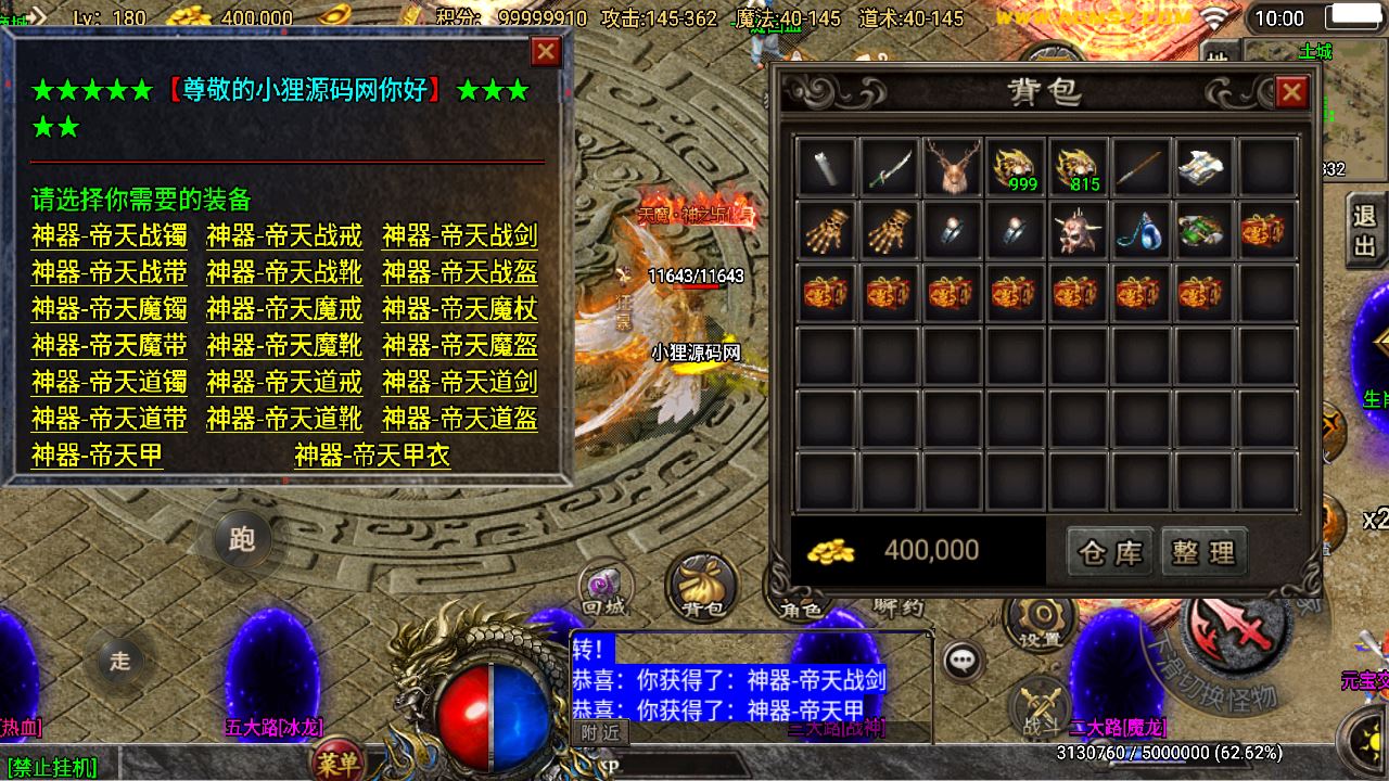 6:本站资源非您个人定制,所以里面的游戏玩法,游戏画面以及游戏设定,装备掉落,金币等游戏初始值可能都不是您期望的效果,您需要自行研究修改完善,或找专业人员按您的想法定制。