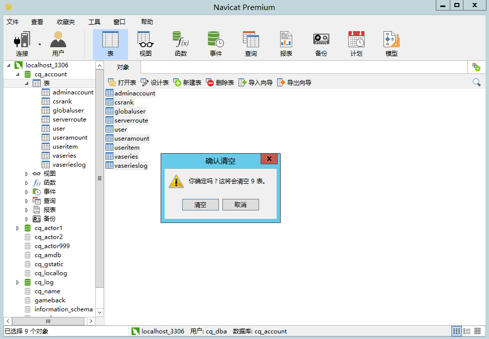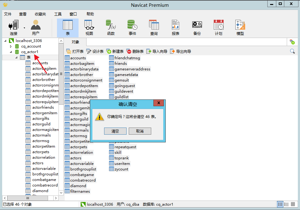 把它们里面的表也清空,这个数据库里面的表多点耐心清空完即可