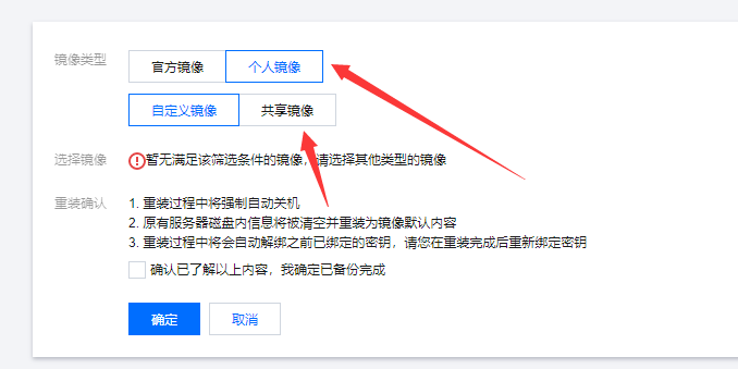 选择重装系统,选择个人镜像,选择共镜像,最后确认即可!