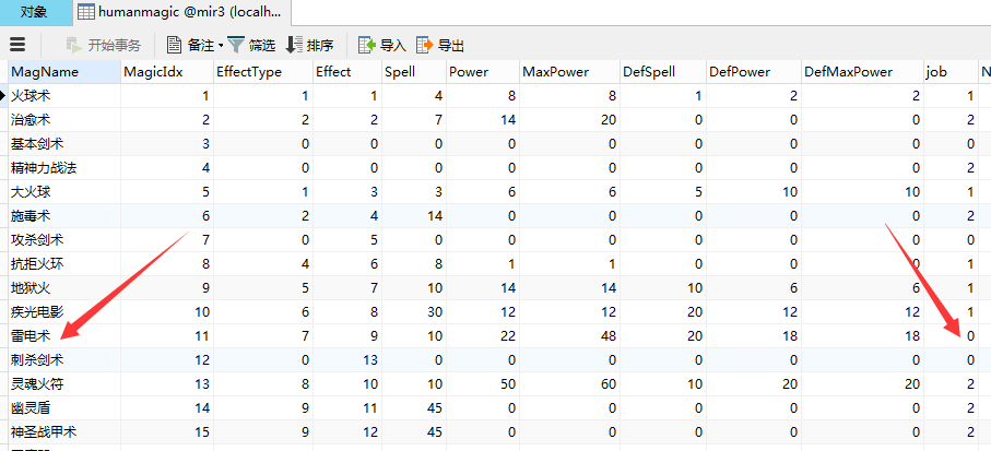 3、找到主号技能数据库:humanmagic,在里面找到其他职业的技能。然后修改。