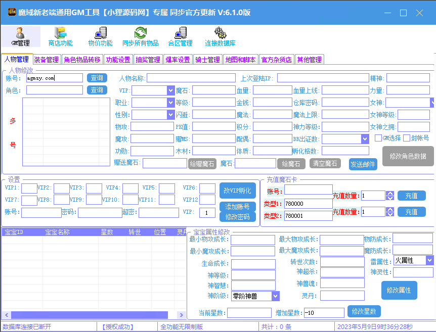 功能很全的一款魔域GM助手工具,包含了发送游戏,发送魔石,合区,修改属性等等功能,感兴趣自行研究!!!