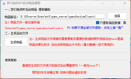 默认只生成物品数据 如果你需要生成其他的就把 工具界面那个 之提取物品数据钩取消