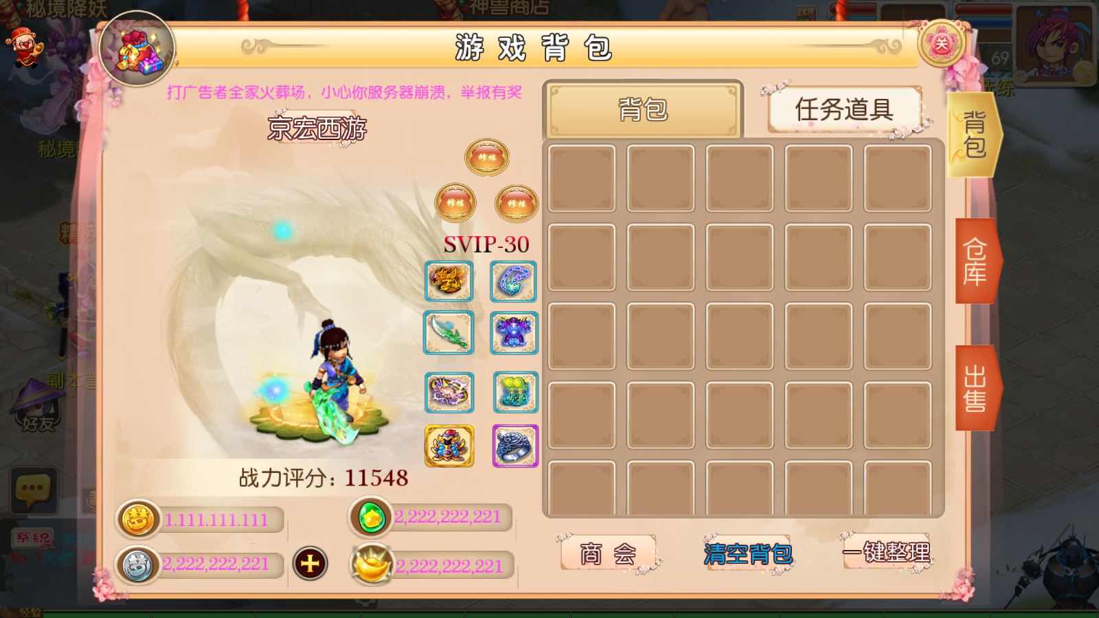 6:本站资源非您个人定制,所以里面的游戏玩法,游戏画面以及游戏设定,装备掉落,金币等游戏初始值可能都不是您期望的效果,您需要自行研究修改完善,或找专业人员按您的想法定制。